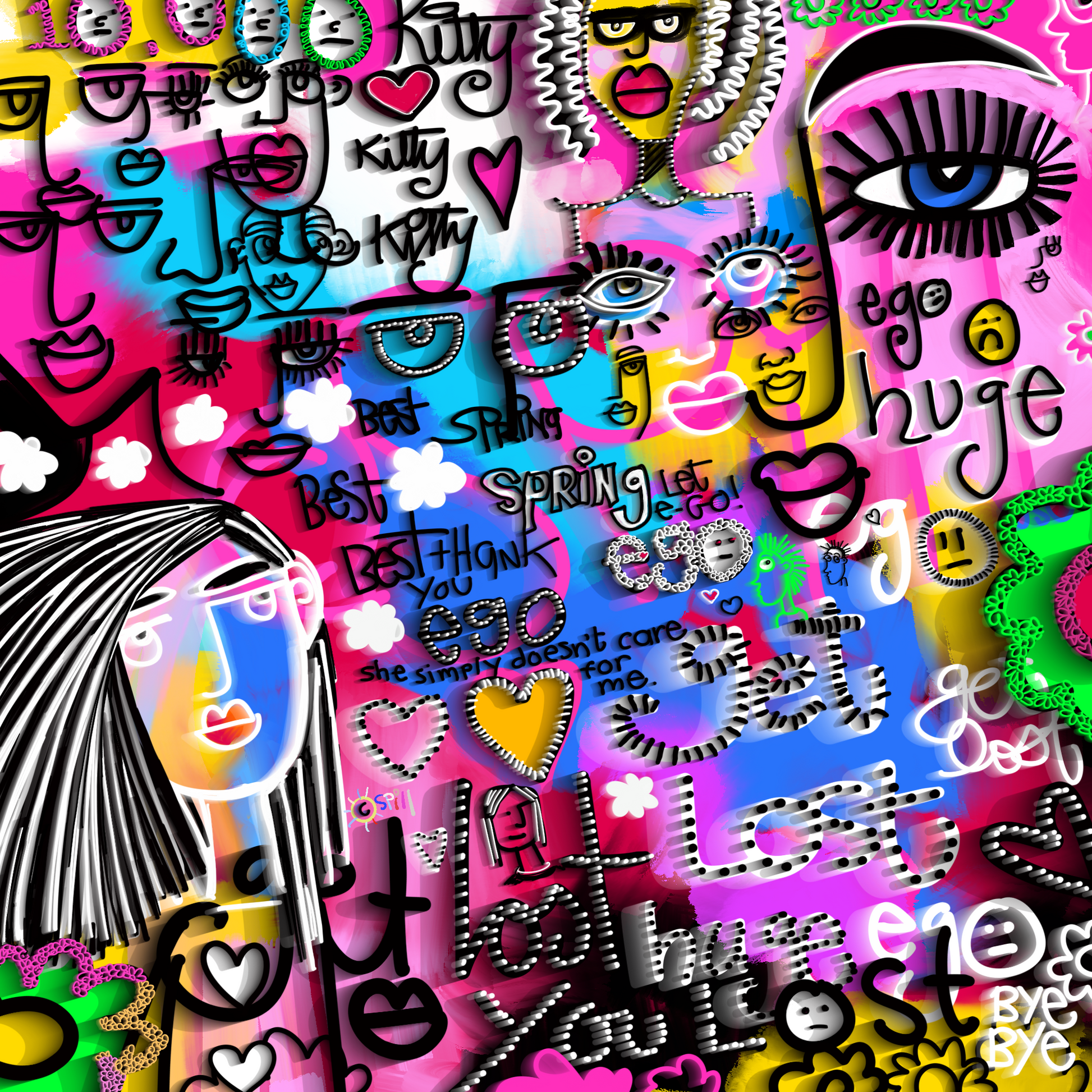”Let E-go”. This funky and original art piece invites you to let go of your ego. A textural masterpiece, with vibrant and rich colors, Let E-go will elevate your space and your mindset.