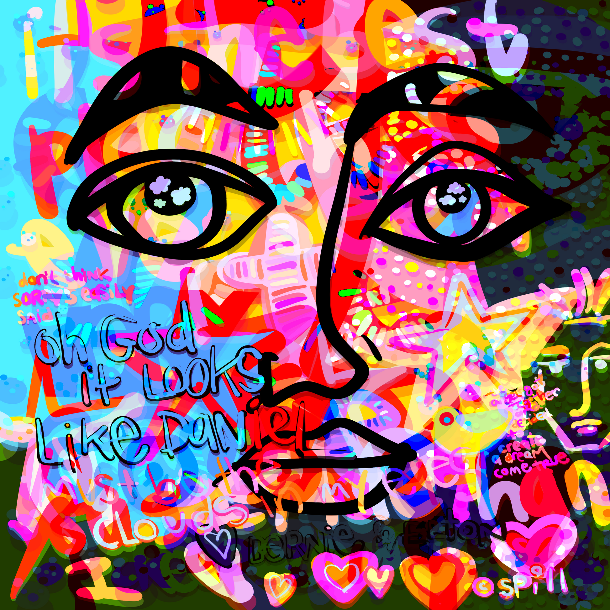 The song Daniel reminds me of when I was a tot living in the home my late daddy built for us in Ohio. My parents always had tunes playing, I would sit on the floor and ingest the album covers, photos, art, and lyrics…like most of us did. My nephew’s name is Daniel too, he’s like my little brother. This is the art I made while listening more recently, sending my love to Elton John and Bernie Taupin.